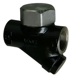 工作原理 疏水閥內有一個閥片,既是敏感件又是動作執行件。當裝置啟動時,管道出現冷卻凝結水,凝結水靠工作壓力推開閥片,迅速排放。當凝結水排放完畢,蒸汽進入疏水閥內,蒸汽的體積迅速擴大,蒸汽比凝結水的流速大,使閥片上下產生壓差,閥片在蒸汽流速的吸力下迅速關閉。當閥片關閉時,閥片受到兩面壓力,閥片下面的受力面積小于上面的受力面積,因疏水閥汽室里面的壓力來源于蒸汽壓力,所以閥片上面受力大于下面,閥片緊緊關閉。當疏水閥汽室里面的蒸汽降溫成凝結水,汽室里面的壓力消失。凝結水靠工作壓力推開閥片,凝結水又繼續排放,循環工作,間斷排水。